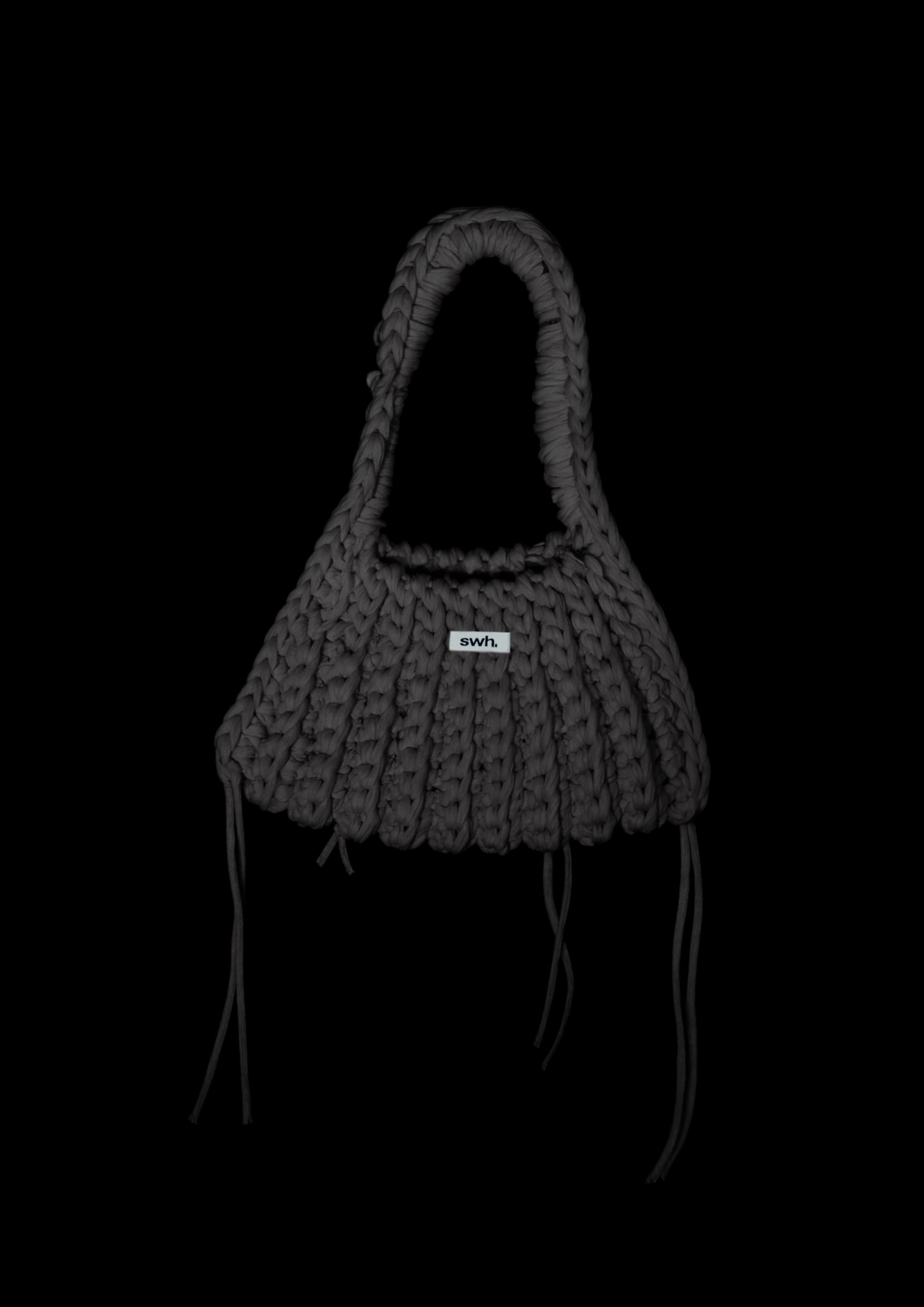 Hand-crocheted T-shirt-yarn handbag. Made from quality yarn with a tactile, structured feel. Soft yet sturdy. Holds its shape and stays practical for daily use.
